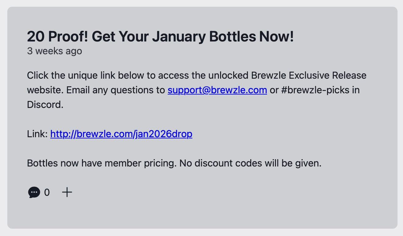 - Free and Paid Club Members will receive a post on the Brewzle Club Website. The post will feature a unique link to unlock the drop section of our bottle shop.